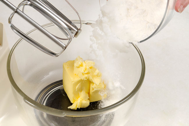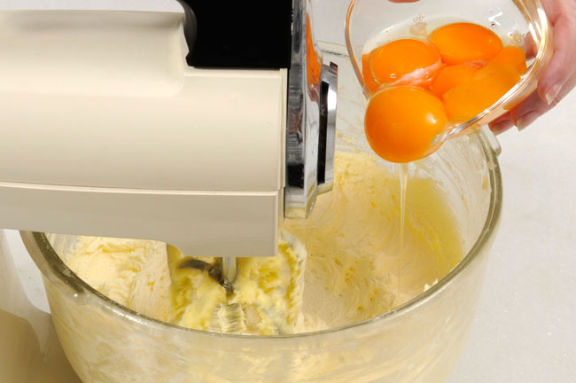 Utilizando uma batedeira, bata a manteiga e o açúcar até esbranquiçar.